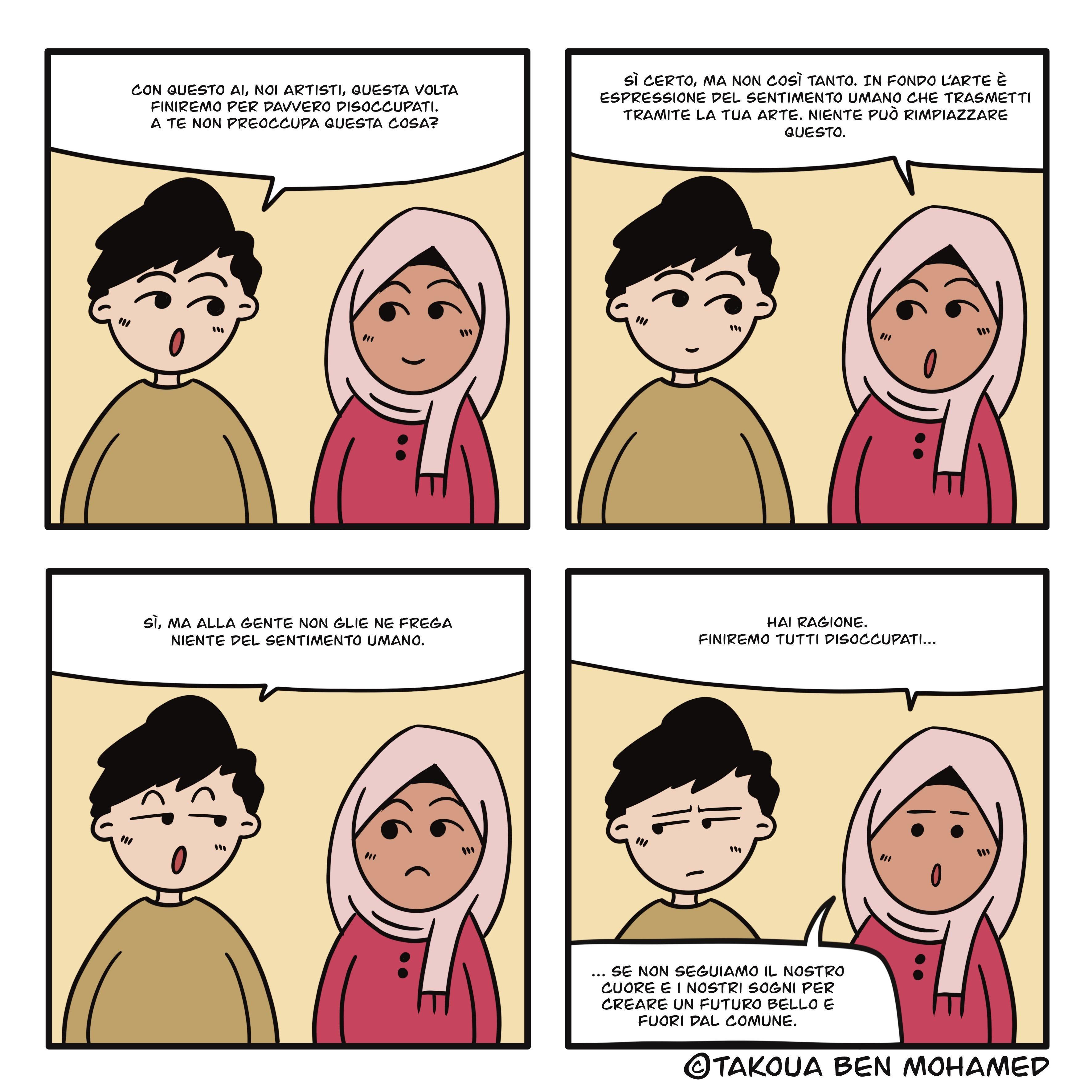 Natale si avvicina, invece che regalarti buoni sconti, ti regaliamo una vignetta di Takoua Ben Mohamed. Takoua ha partecipato attivamente a Young Campus, dove il dialogo e il confronto intergenerazionale hanno guidato la giornata.